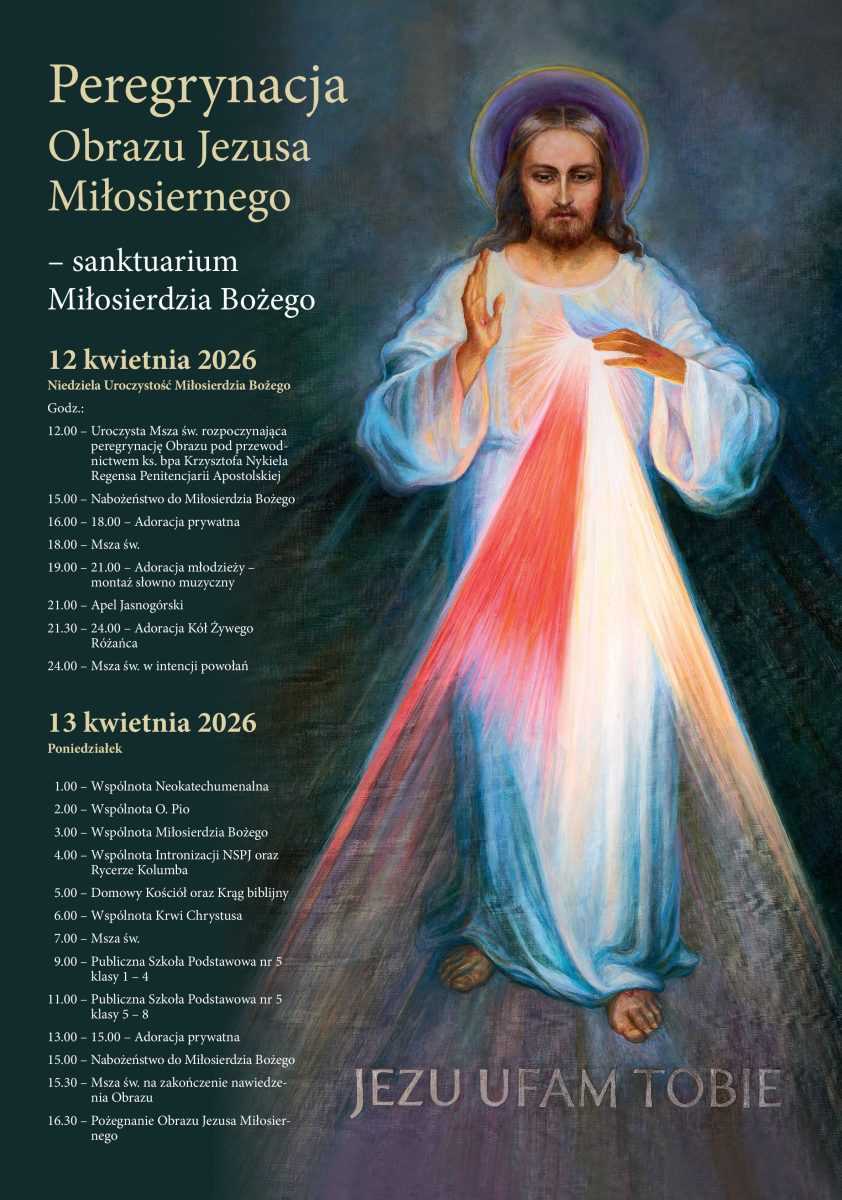 PEREGRYNACJA ORAZU JEZUSA MIŁOSIERNRGO „Świadkowie Miłosiernego” – zapowiedź peregrynacji obrazu Jezusa Miłosiernego w Diecezji Sandomierskiej Zobacz PROGRAM PIELGRZYMKI AKTUALNOŚCI Pomoc najbliższym w odbudowaniu więzi z Kościołem Czytaj więcej » Fundamentalna wartość życia ludzkiego Czytaj więcej » Miłość do Kościoła Czytaj więcej » Rozpoczęcie Renowacji Misji Ewangelizacyjnych Czytaj więcej » Imieniny ks. Adriana Czytaj więcej » Środa Popielcowa Czytaj więcej » Spotkanie opłatkowe wspólnot parafialnych Czytaj więcej » Jasełka dzieci z PP 19 Czytaj więcej » Niedziela Chrztu Pańskiego – koncert kolęd Czytaj więcej » "Jezu, przyjmuję wszystko, cokolwiek chcesz na mnie zesłać; ufam Twojej dobroci" /Dz. 190/. FOTOPRZEWODNIK VIDEOPRZEWODNIK WARTO ZOBACZYĆ "Jezu, kształtuj moje biedne serce według Twojego Boskiego upodobania"/Dz. 178/. MSZA ŚWIĘTA ONLINE CZYTANIA LITURGICZNE MODLITWA W DRODZE POLECAMY