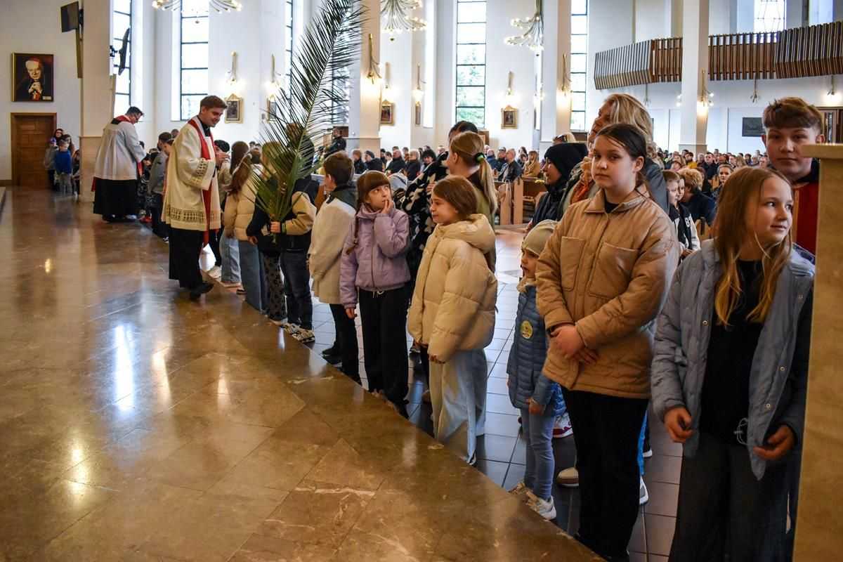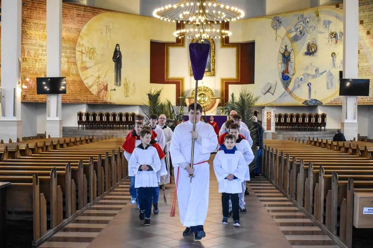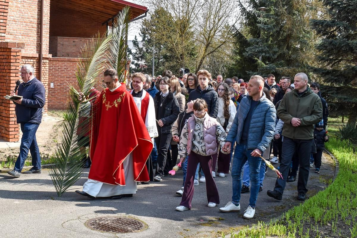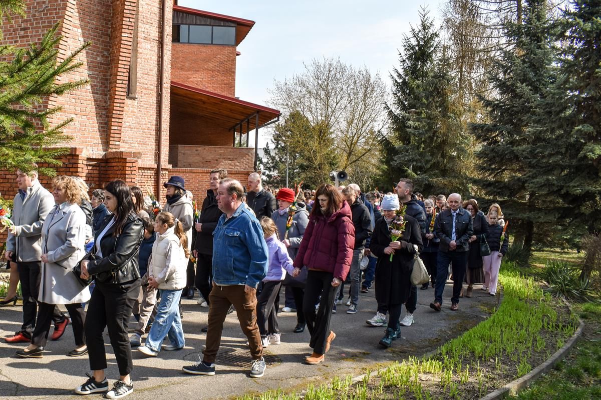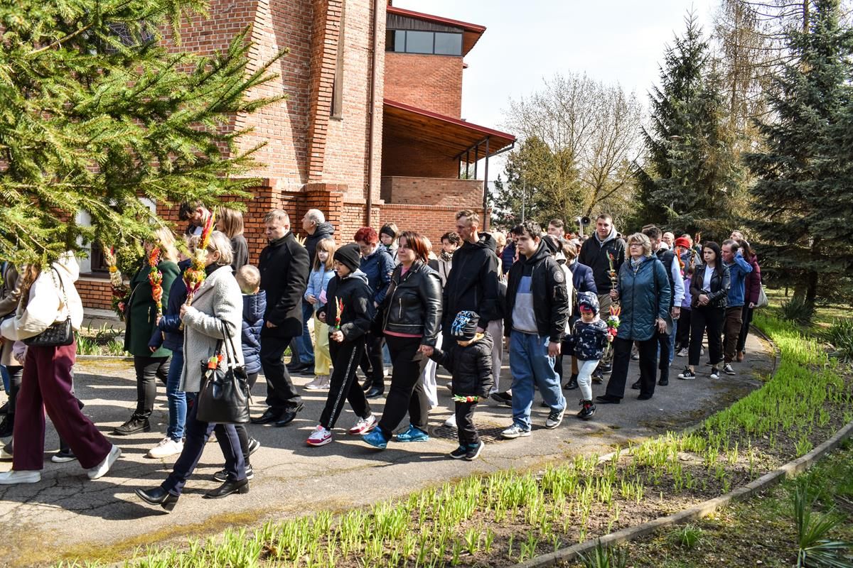 Uroczysta Msza Święta w Niedzielę Palmową, 29 marca 2026 roku o godzinie 12.00, zgromadziła licznych wiernych na wspólnym świętowaniu pamiątki wjazdu Chrystusa do Jerozolimy. Liturgię odprawił ks. Proboszcz Marek Kumór, który dokonał poświęcenia palm, a następnie poprowadził procesję wokół świątyni. O radosną, modlitewną atmosferę zadbała schola dziecięca i młodzieżowa, wykonując pieśni przy akompaniamencie gitar. Szczególny charakter miało wyznanie wiary – wspólnocie neokatechumenalnej powierzono zaintonowanie i przewodniczenie śpiewowi „Wierzę w Boga”, co podkreśliło jedność i zaangażowanie grup parafialnych w przeżywanie tajemnic Wielkiego Tygodnia.