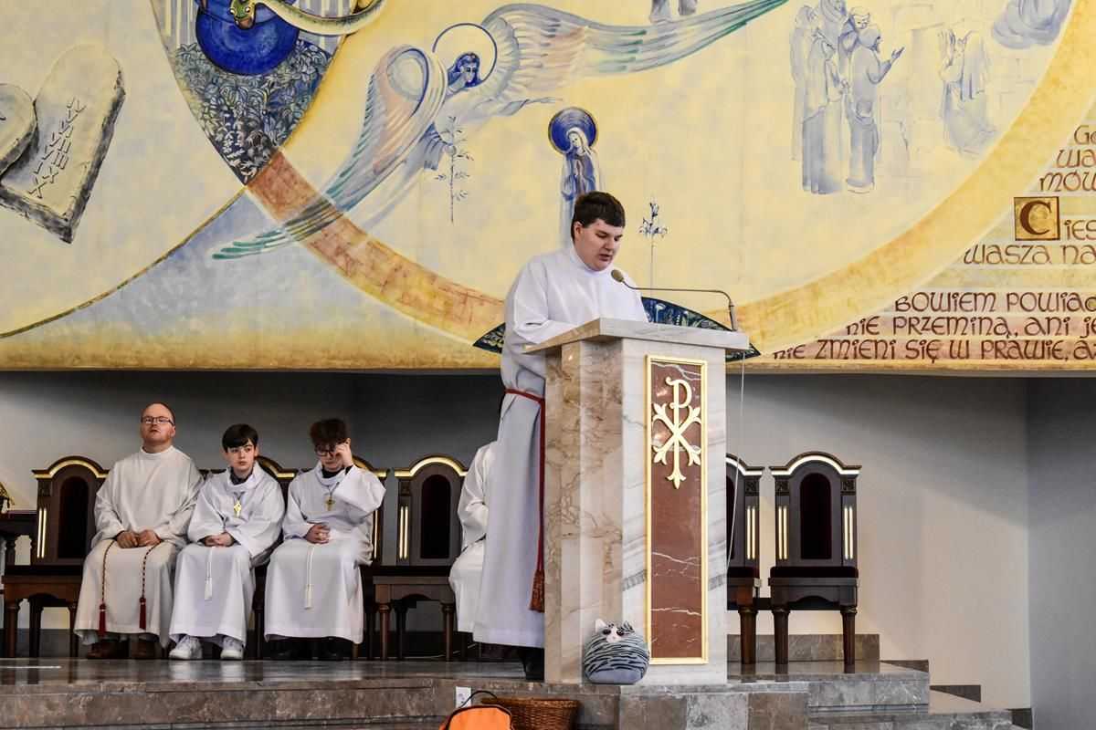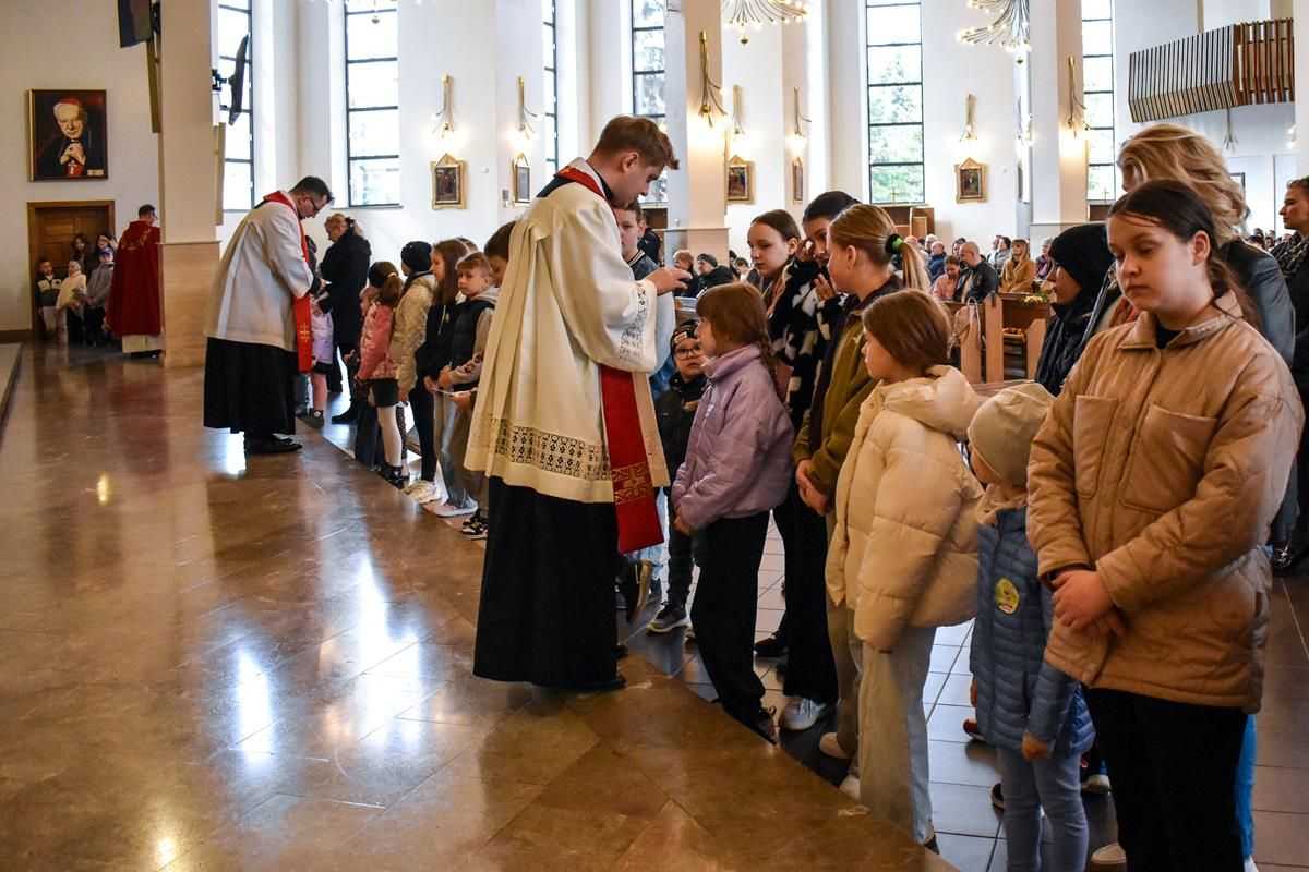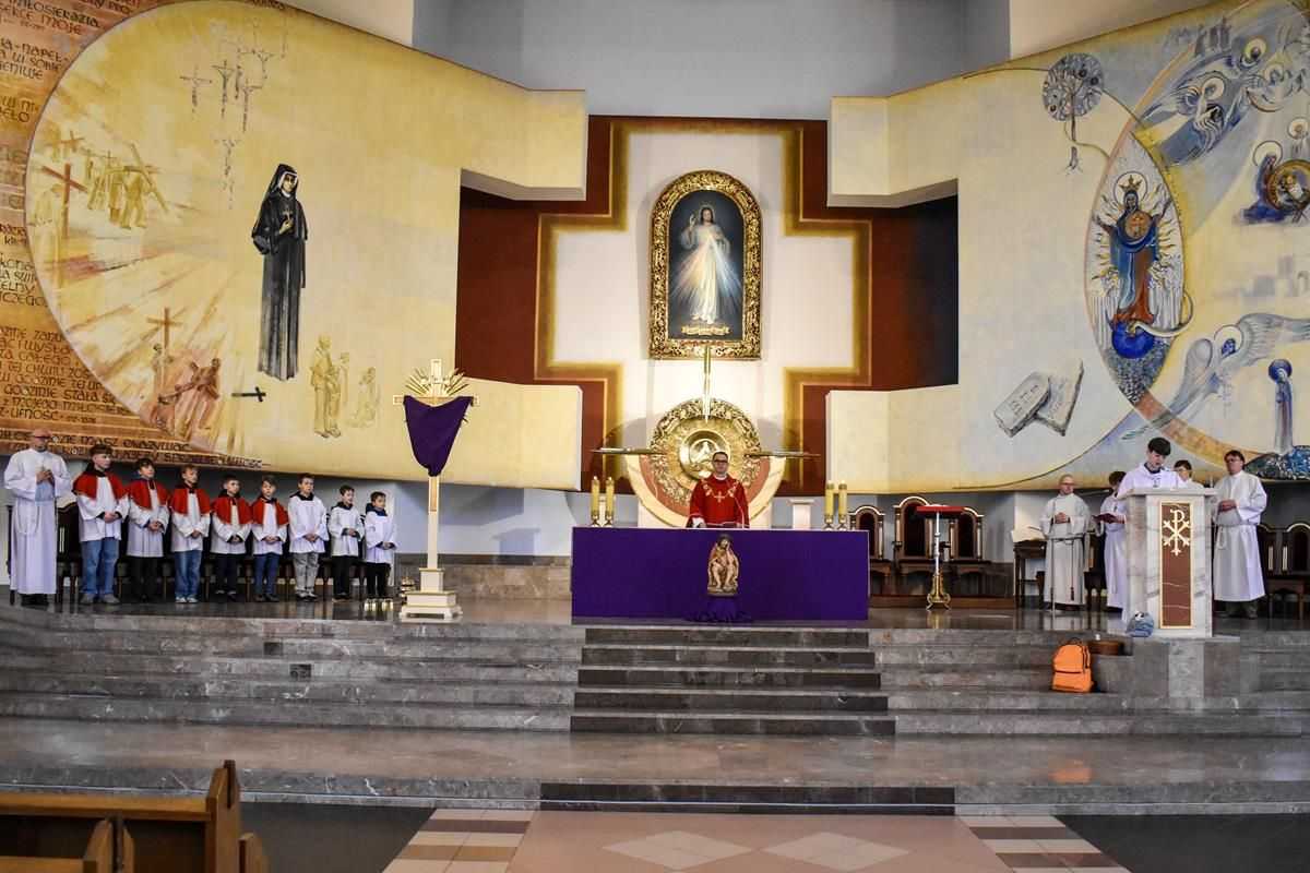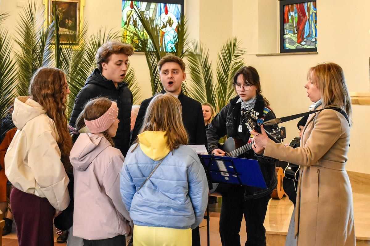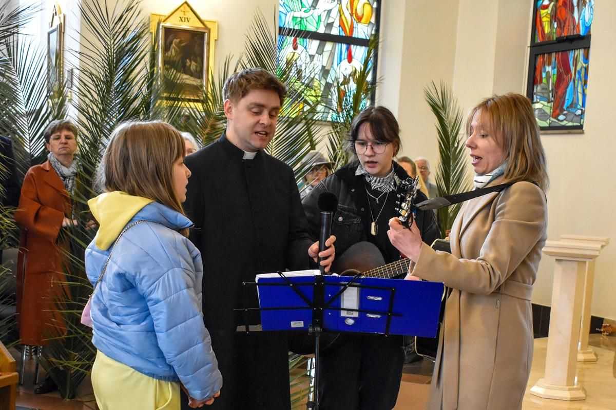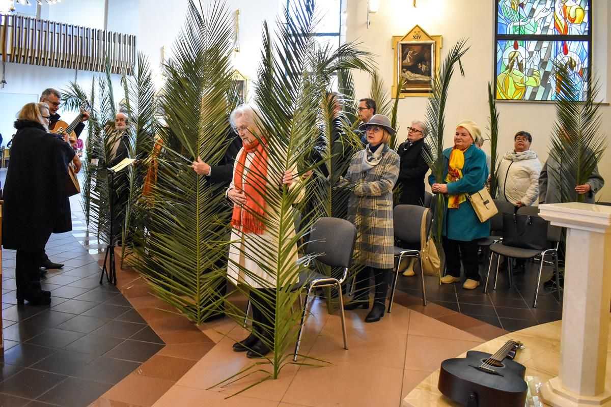 Uroczysta Msza Święta w Niedzielę Palmową, 29 marca 2026 roku o godzinie 12.00, zgromadziła licznych wiernych na wspólnym świętowaniu pamiątki wjazdu Chrystusa do Jerozolimy. Liturgię odprawił ks. Proboszcz Marek Kumór, który dokonał poświęcenia palm, a następnie poprowadził procesję wokół świątyni. O radosną, modlitewną atmosferę zadbała schola dziecięca i młodzieżowa, wykonując pieśni przy akompaniamencie gitar. Szczególny charakter miało wyznanie wiary – wspólnocie neokatechumenalnej powierzono zaintonowanie i przewodniczenie śpiewowi „Wierzę w Boga”, co podkreśliło jedność i zaangażowanie grup parafialnych w przeżywanie tajemnic Wielkiego Tygodnia.