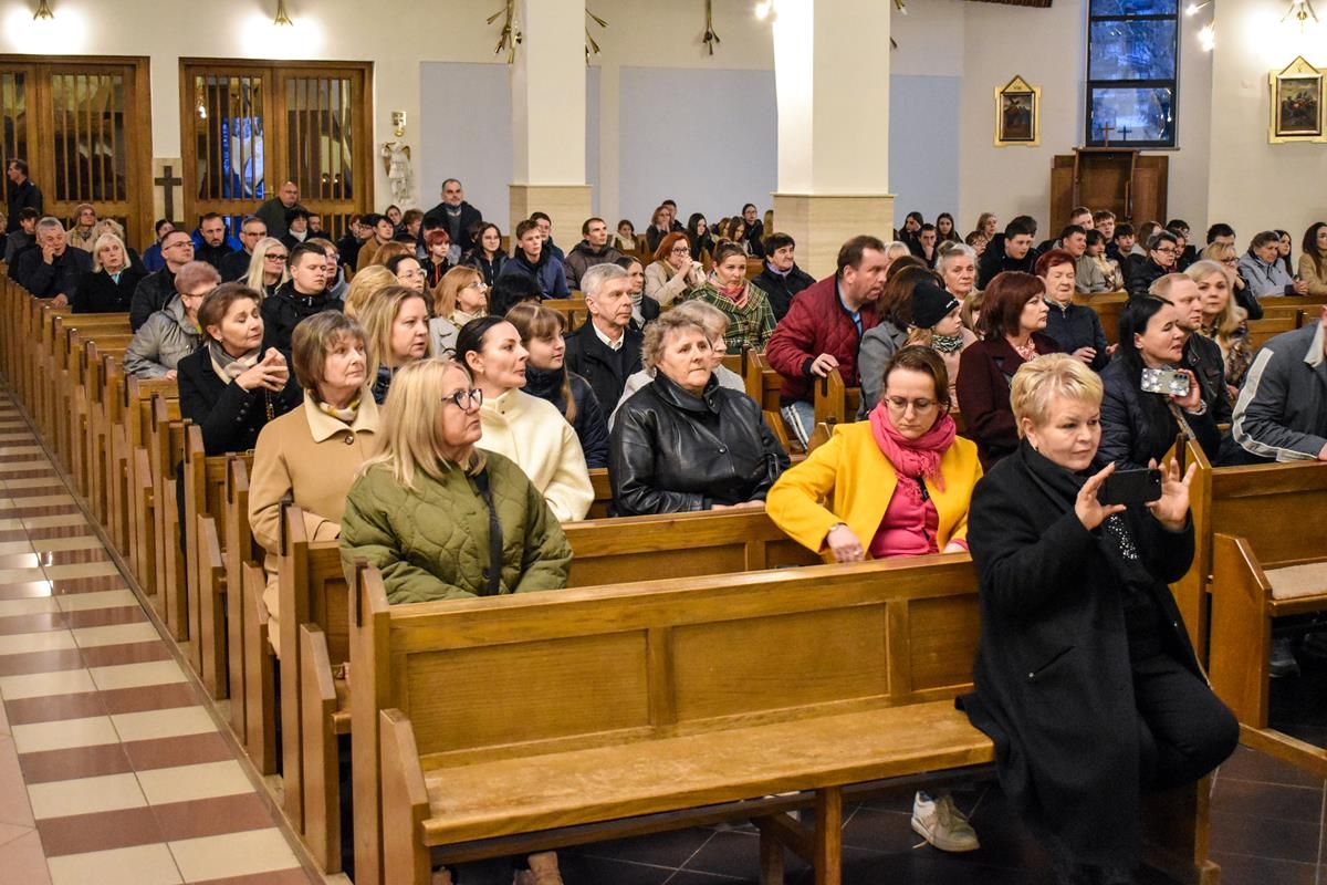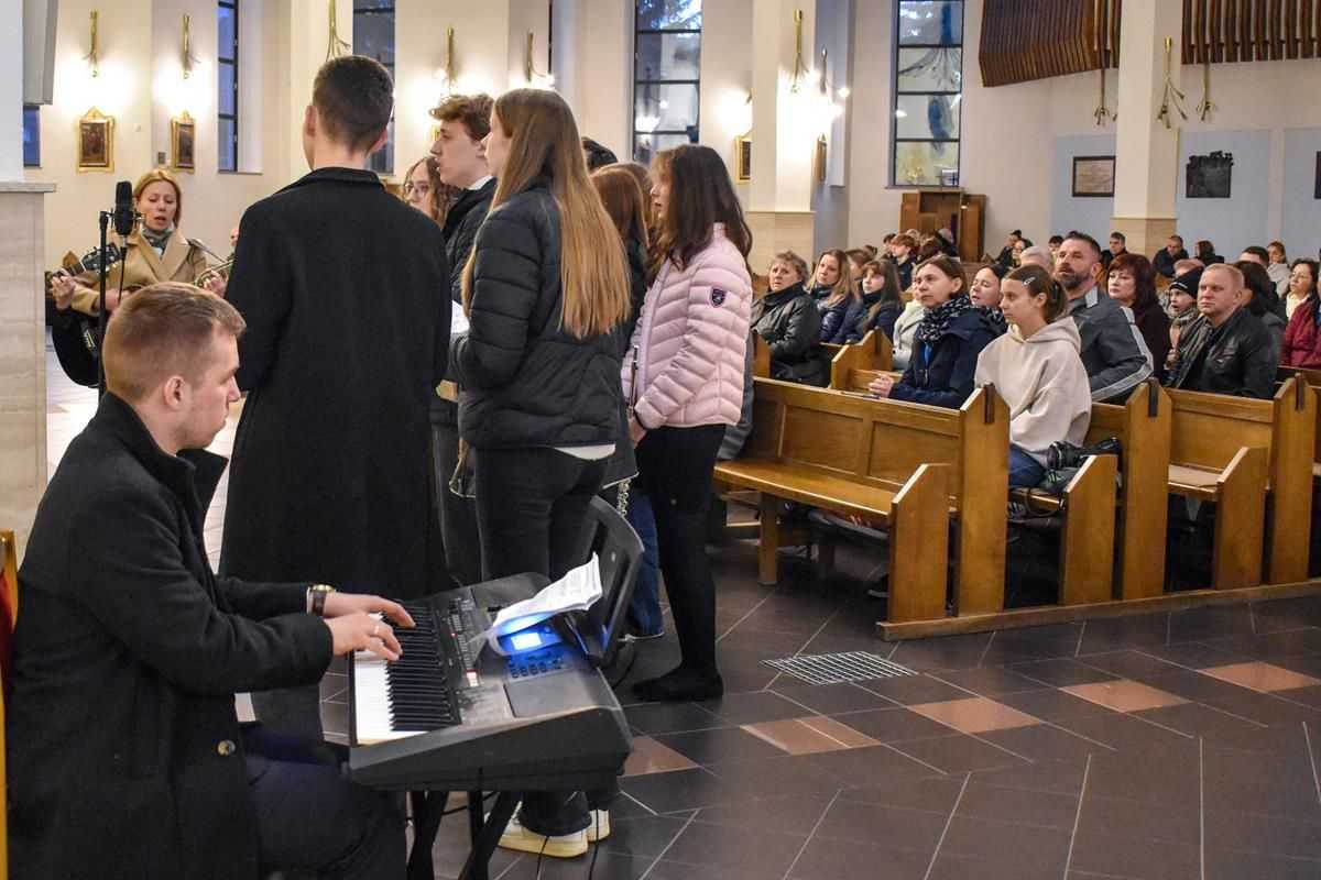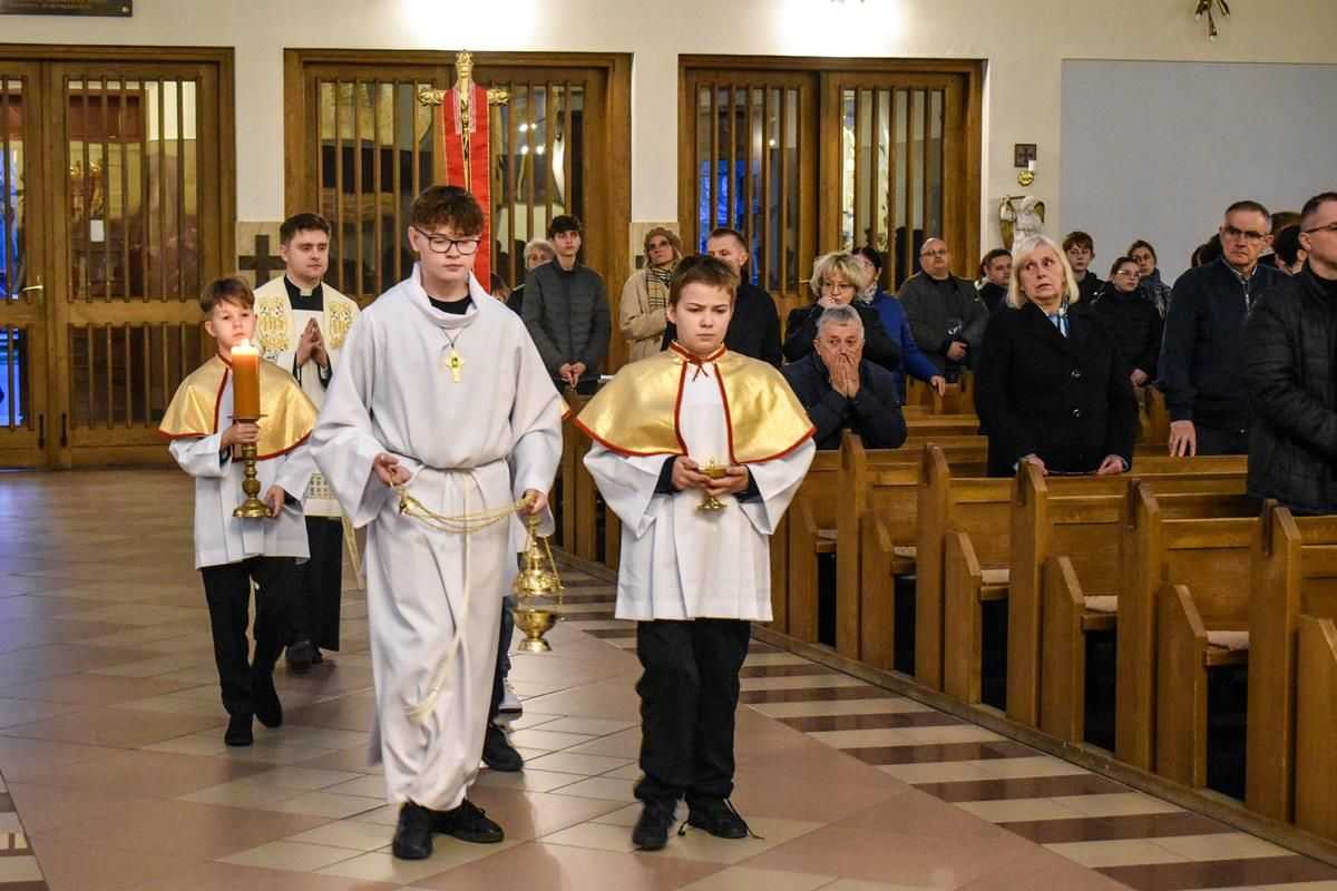 Wieczorne spotkanie modlitewne stało się dla młodzieży wyjątkowym czasem zatrzymania i wejścia w głąb siebie. Przed Obrazem Jezusa Miłosiernego młodzi ludzie trwali na wspólnej adoracji, zawierzając Bogu swoje życiowe wybory oraz drogę przygotowania do bierzmowania.