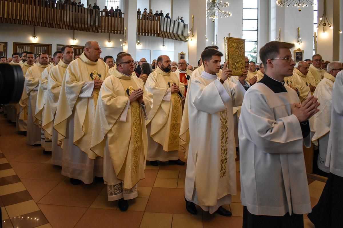 Podczas liturgii odczytano dekret o możliwości uzyskania odpustu zupełnego w czasie nawiedzenia obrazu w parafiach oraz poświęcono kopię wizerunku autorstwa Małgorzaty Toborowicz. Biskup Nykiel w homilii podkreślił, że peregrynacja to nie wydarzenie muzealne, lecz realny znak obecności Chrystusa i czas szczególnej łaski, będący odpowiedzią na niepokoje współczesnego świata.