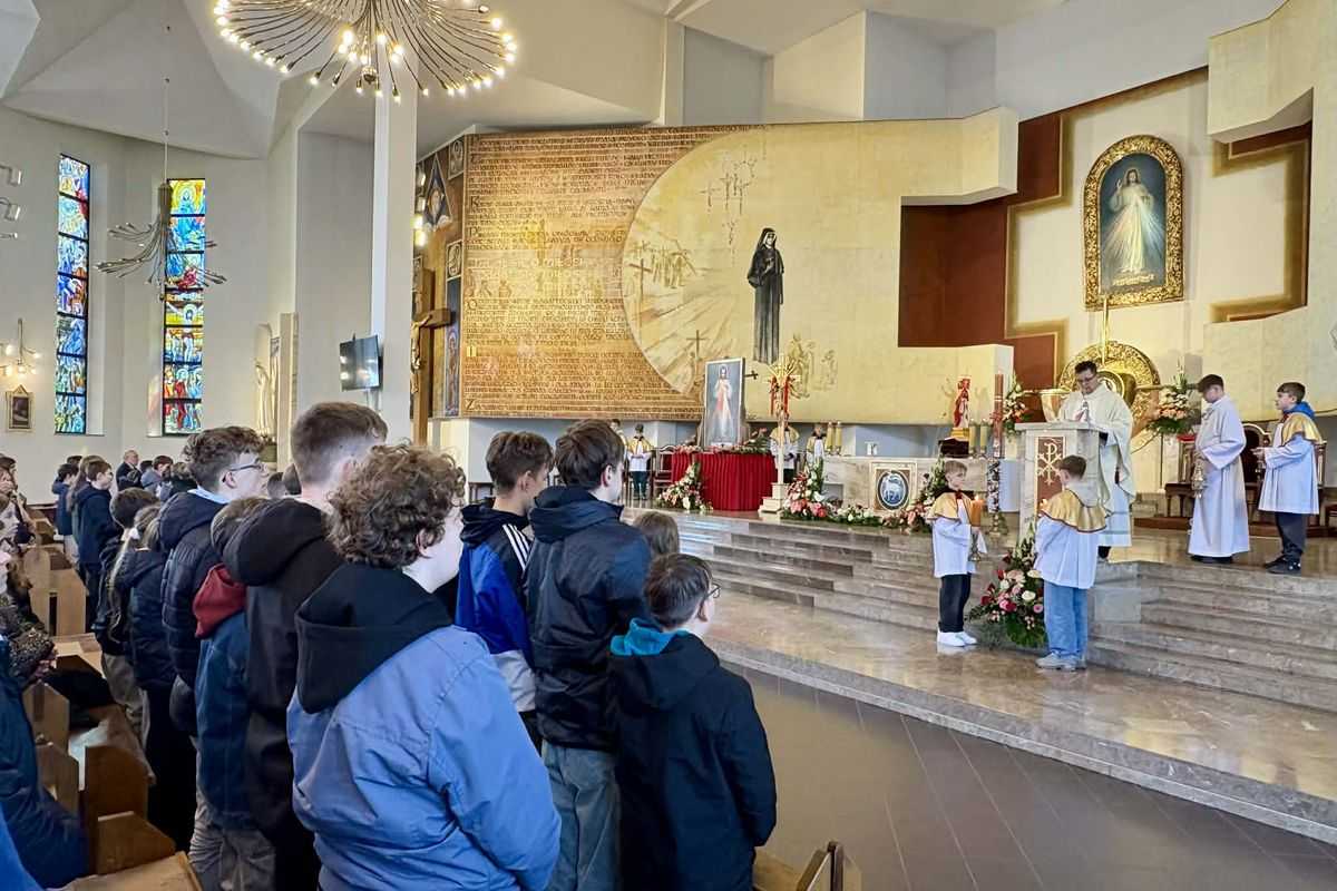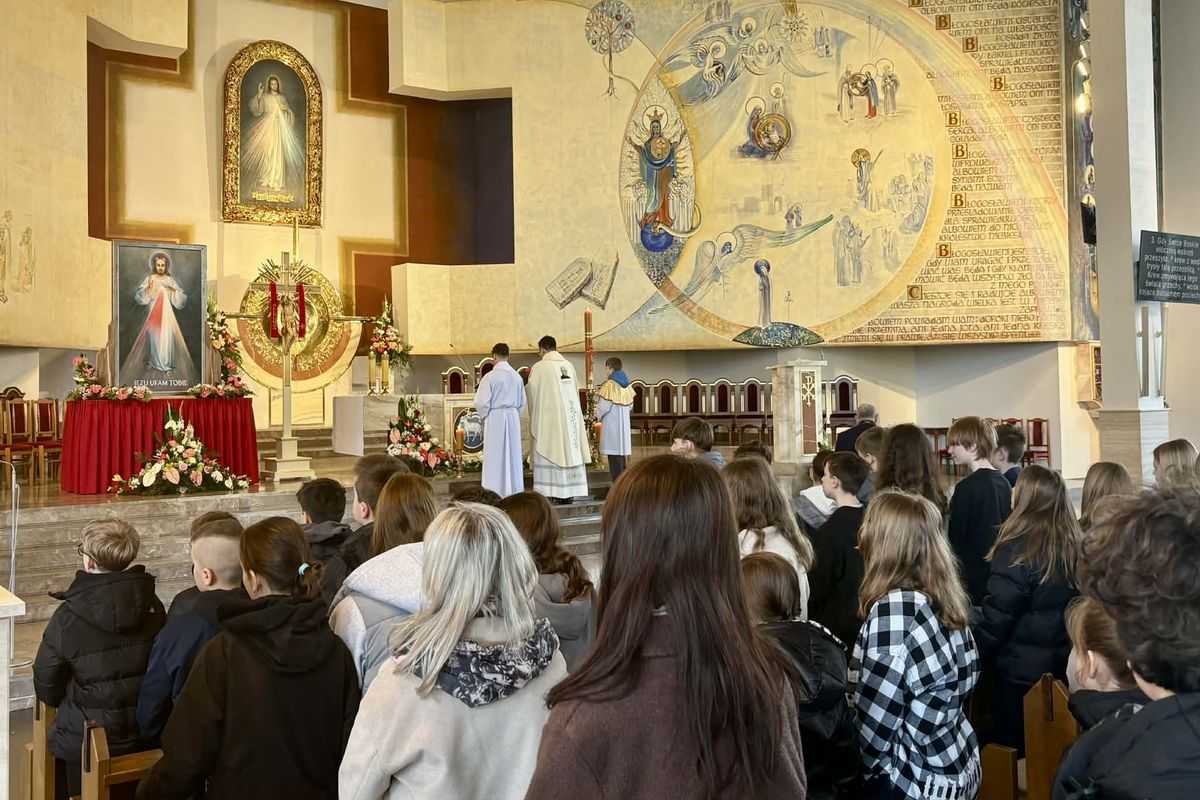 W poniedziałek, 13 kwietnia, uczniowie Publicznej Szkoły Podstawowej nr 5 uczestniczyli w wyjątkowym spotkaniu z Jezusem Miłosiernym, które prowadzili ksiądz Adrian Trybulski i ksiądz Łukasz Michalczyk. Ważnym elementem liturgii było kazanie, które w poruszających słowach przybliżyło młodym wiernym znaczenie trwającej peregrynacji.