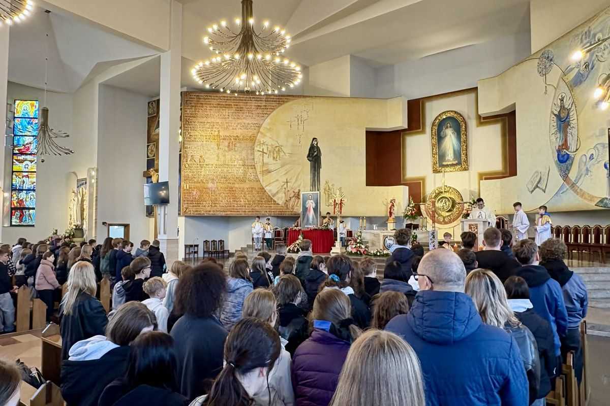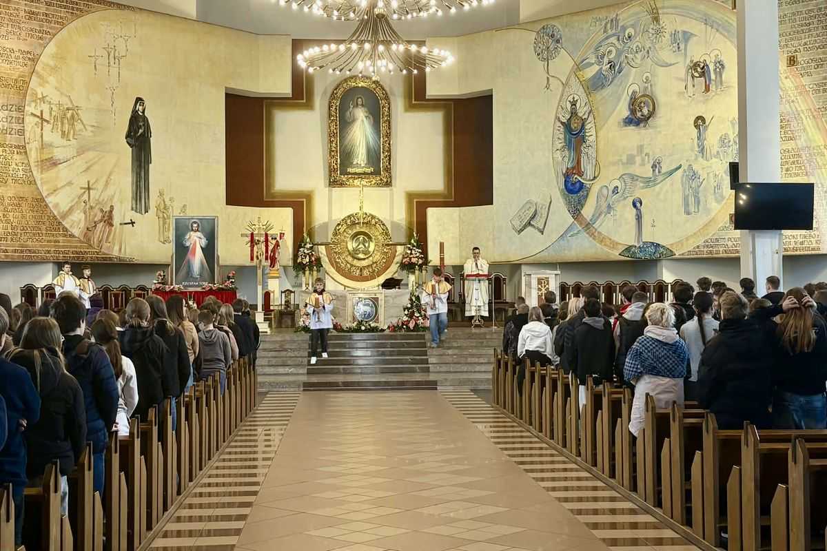 Duchowny podkreślił, że nawiedzenie Obrazu Jezusa Miłosiernego ma być przede wszystkim impulsem do ożywienia osobistej wiary i budowania bliższej relacji z Bogiem. W dalszej części homilii duszpasterz wyjaśnił bogatą symbolikę obrazu, tłumacząc znaczenie wymownych promieni wychodzących z serca Zbawiciela oraz płynącego z nich wezwania do całkowitego zaufania, wyrażonego w słowach „Jezu, ufam Tobie”. Całe spotkanie stało się dla uczniów cenną lekcją duchowości oraz okazją do osobistego zawierzenia swoich trosk i radości Bożemu Miłosierdziu.